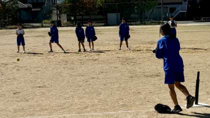 1年・体育・ソフトボール 公開日 2024/10/21 更新日 2024/10/21 1学年 10月21日(月) 2限 1年5組の体育は、グラウンドでソフトボールをしていました。 バッターが軽く打ったボールを、キャッチしてからスローイングする練習です。 これがなかなか難しぃ〜。