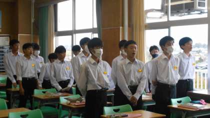 1年・音楽・合唱コンクールに向けて 公開日 2024/10/24 更新日 2024/10/24 1学年 10月24日(木) 1限 1年5組の音楽は、合唱コンクールの曲「大切なもの」の練習をしています。 歌詞を丁寧にはっきり歌い、「大切なもの」に込められた思いを伝えましょう。