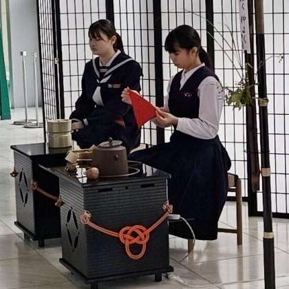 市中学校文化祭・その1 公開日 2024/10/26 更新日 2024/10/26 山室中学校のページ 10月26日(土) 13:00 市中学校文化祭が、オーバードホールで行われています。 茶道部は、お茶会・第9席目で、お点前、半東、お運びなどで大活躍しています。