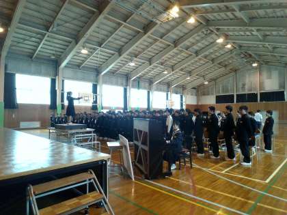 学年合唱曲を合わせるのは2回目でしたが、体育館全体に1年生の歌声が響き渡っていました。