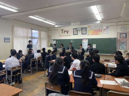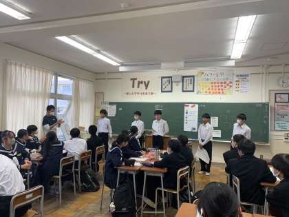 1年生は、学年代表、各クラスの学級代表、副学級代表、班長が集まって拡大班長会をおこなっています。