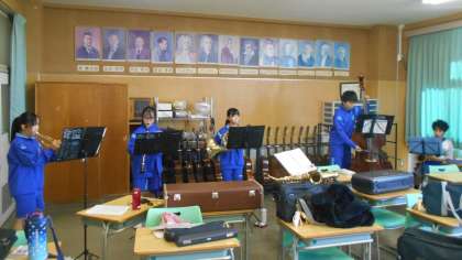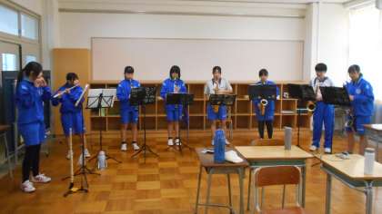 11月9日(土)の部活動・その2 公開日 2024/11/09 更新日 2024/11/09 部活動 11月9日(土) 11:30 吹奏楽部は、アンサンブルコンテストに向けて練習をしています。 リズムを確認したり、パートのバランスを考えたりと2年生が率先して声を掛けていました。 「立場が人をつくる」というように、これからの2年生のリーダーシップが楽しみです。