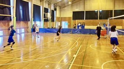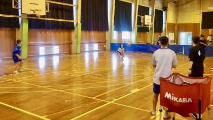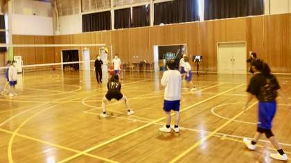 バレーボール部は、ボールを返す位置を考えながら、2段トスの練習をしています。