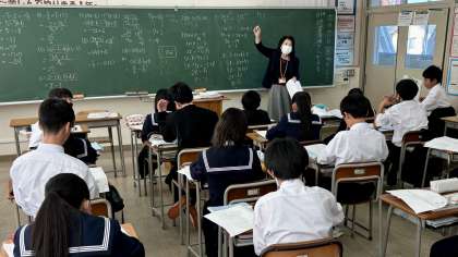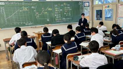 (写真 上:1年2組 数学「中教研学力調査の見直し」)