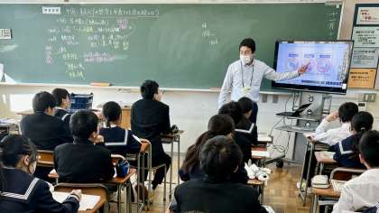(写真 中:1年4組 社会「中国と東南アジアの経済」)