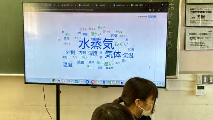 2年・理科・授業研究・その2 公開日 2024/11/14 更新日 2024/11/14 2学年 11月14日(木) 1限 結露した窓ガラスの映像から、窓ガラスに水滴がつく理由を考え、班で水滴ができる条件について意見交換しました。 そして、どのような条件のときに、水蒸気が変化するのか仮説を立てました。 どの班もたくさんの意見が出て、次時の実験が楽しみですね!