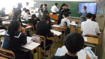 3年・授業風景 公開日 2024/11/15 更新日 2024/11/15 3学年 11月15日(金) 5限 早いもので、今日で11月も折り返します。 第3回定期考査に向けて、頑張ろうとする声が聞かれるようになりました。来週には、進路懇談会も予定されています。「有言実行」で、頑張れ、3年生! (写真 上:3年1組 社会「地方公共団体のしくみ」) (写真 中:3年2組 英語「目的格について」) (写真 下:3年3組 英語「Unit5」)