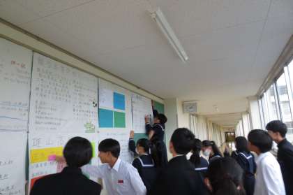 2年・進路学習 公開日 2024/11/18 更新日 2024/11/18 2学年 11月18日(月) 6限 上級学校調べの掲示物づくりは最終日です。 完成した班から、廊下に掲示しています。 いろいろな高校の特色を知り、自分の進路決定の参考にしましょう。