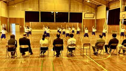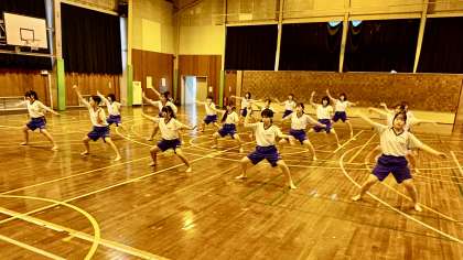 3年・体育・よさこい発表会 公開日 2024/11/22 更新日 2024/11/22 3学年 11月22日(金) 4限 3年1組の女子の体育は、体育館で、よさこい発表会を行いました。 たくさんの教職員が見守る中、円陣を組んで気合いを注入し、演技が始まりました。 かけ声、振り付けの統一感は練習の賜です。 特に、ラストの一体感は圧巻でした。(写真:下)