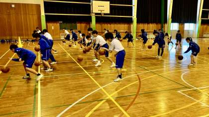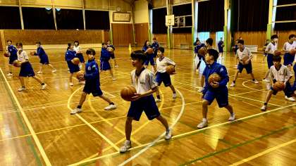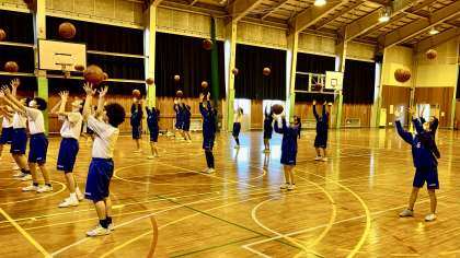 1年・体育・バスケットボール 公開日 2024/11/22 更新日 2024/11/22 1学年 11月22日(金) 5限 1年4組の体育は、体育館で、バスケットボールを行います。 リズムアップというオリジナルの準備運動が始まりました。 音楽に合わせて、楽しそうに活動しているのが印象的です。
