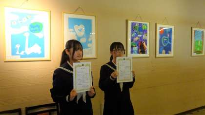 1年・美術部員が、ライオンズ世界平和ポスターコンテストに出品し、 グランテラス富山にて感謝状を授与されました。