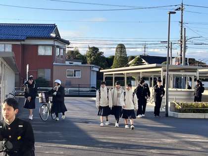 朝の登校風景 公開日 2024/11/25 更新日 2024/11/25 1学年 11月25日(月) 7:55 気温は5度。天気は晴れ。 吐く息が真っ白になってきました。 生徒が元気に登校してきました。 今日から、「第3回 定期考査」が始まります。