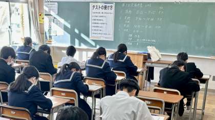 1年・第3回 定期考査・2日目 公開日 2024/11/26 更新日 2024/11/26 1学年 11月26日(火) 1限 理科 「第3回 定期考査」2日目です。 (写真 上:1年4組 下:1年5組)