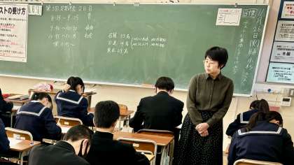 2年・第3回 定期考査・2日目 公開日 2024/11/26 更新日 2024/11/26 2学年 11月26日(火) 1限 音楽 「第3回 定期考査」2日目です。 (写真 上:2年4組 下:2年5組)