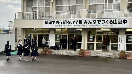 朝の登校風景 公開日 2024/11/27 更新日 2024/11/27 山室中学校のページ 11月27日(水) 7:55 気温は12度、天気はくもり。 生徒が元気に登校してきました。 昨晩22:47頃の地震、すごく揺れましたね。 (私は、すごく怖かったです。) テスト勉強にも影響が出たのでは、……。