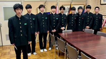 「第18回 北信越中学校駅伝競走大会」に出場する男子駅伝部の激励会を校長室で行いました。