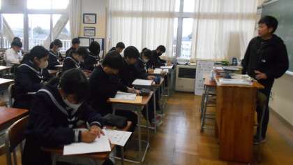 2年・社会・政治の改革 公開日 2024/11/28 更新日 2024/11/28 2学年 11月28日(木) 1限 2年1組の社会は、江戸幕府の改革について学習しています。 「天保の改革」等、重要な語句について説明を聞き、ノートにまとめていました。