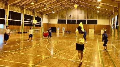 バレーボール部は、体育館で、ボールの下に素早く入ることと、相手がミスした時にすぐにカバーしに行くことを意識して3人レシーブの練習をしました。