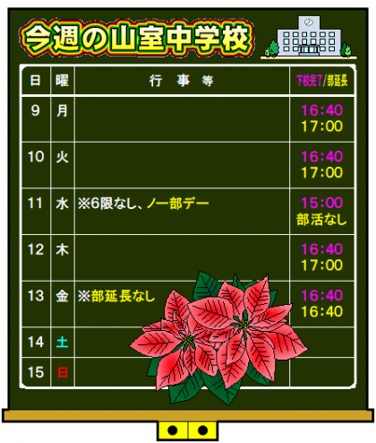 12月第2週になり、2学期もあと2週間ちょっとになりました。