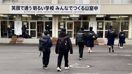 朝の登校風景 公開日 2024/12/09 更新日 2024/12/09 山室中学校のページ 12月9日(月) 7:50 気温は4度、天気はくもり。 雲が広がり、ドンヨリとした冬の空模様となっています。 生徒が元気に登校してきました。