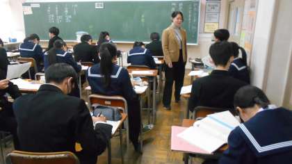 3年・授業風景 公開日 2024/12/09 更新日 2024/12/10 3学年 12月9日(月) 4限 外は冷え込んでいますが、教室はエアコンが効いて、快適な環境で学習に励んでいます。 3年生は、大事なポイントを逃さず聞き取ろうとする姿勢が見られました。 (写真 上:3年1組 社会「消費者問題」) (写真 中:3年3組 国語「誰かの代わりに」) (写真 下:3年5組 英語「Unit6」)