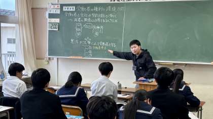 (写真 下:3年3組 社会「労働者の権利と環境」)