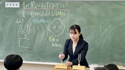 1年・理科・音の伝わり方 公開日 2024/12/11 更新日 2024/12/11 1学年 12月11日(水) 4限 1年3組の理科は、音の伝わり方を学習しています。 (写真 上:音叉での共鳴演示実験) (写真 下:真空中での音の伝わり方の動画視聴) 音は目で見えないので、なかなか難しい分野です。