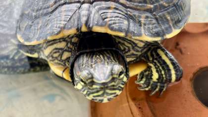 のぞみ級で飼っているミドリガメのキリトが、甲羅干しをしています。