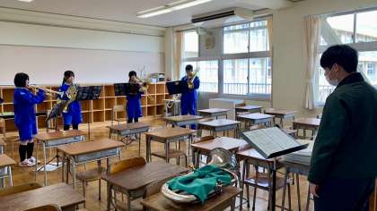 吹奏楽部は、アンサンブルコンテストに向けて、練習を重ねています。