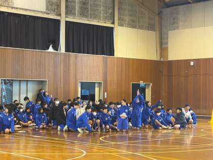 ただ問題に答えるだけではなく、体育館の端から端まで移動して回答するゲームでした。