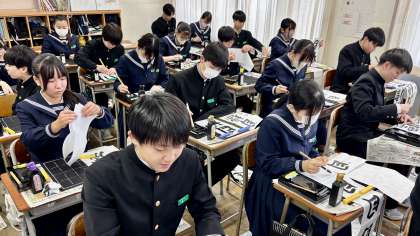 (写真 上:3年2組 理科「季節による昼と夜の長さの違い」)