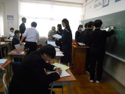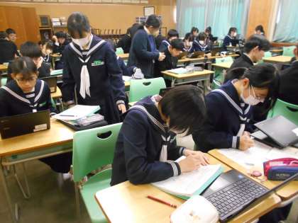 3年・授業風景 公開日 2024/12/19 更新日 2024/12/19 3学年 12月19日(木) 1限 積極的に挙手をし、発表したり、課題に取り組んだりと頑張る3年生! (写真 上:3年1組 社会「為替について」) (写真 中:3年2組 音楽「ボディパーカッション」) (写真 下:3年3組 英語「Unit6」)
