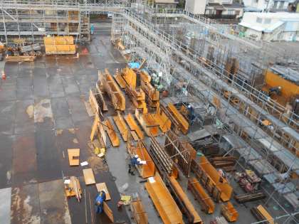 12月19日(木)の体育館工事速報 公開日 2024/12/19 更新日 2024/12/19 山室中学校のページ 12月19日(木) 9:00 足場の後は、型枠が着々と組まれています。 晴れてはいますが、寒い中、お疲れ様です。 ▼校舎4階から撮影