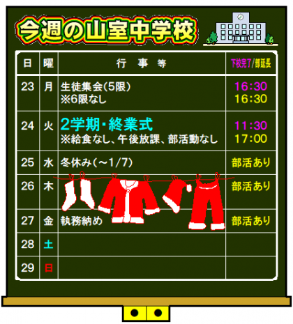 24日(火)は、「2学期・終業式」です。