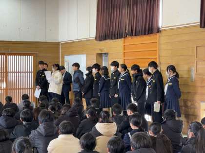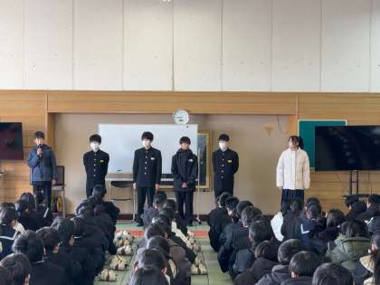 1年生は、誠道館で、2学期最後の学年集会をおこないました。