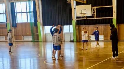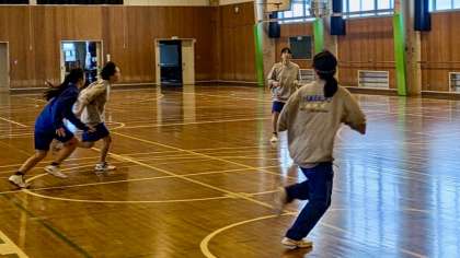 女子バスケットボール部は、ダブルチームからの動きを重点的に練習しています。