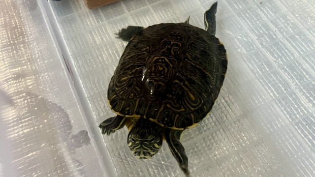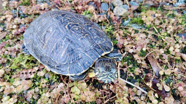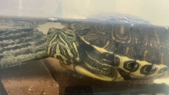 のぞみ級のミドリガメ「キリト」は、冬休み中、谷川先生んちに帰省中です。