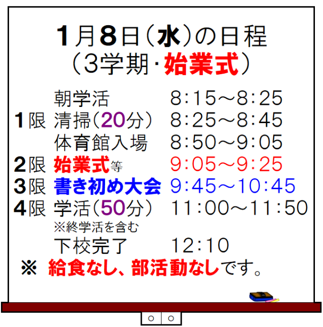 明日8日(水)は、3学期・始業式です。