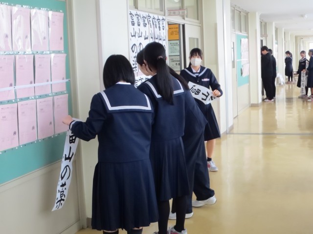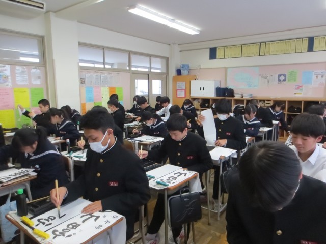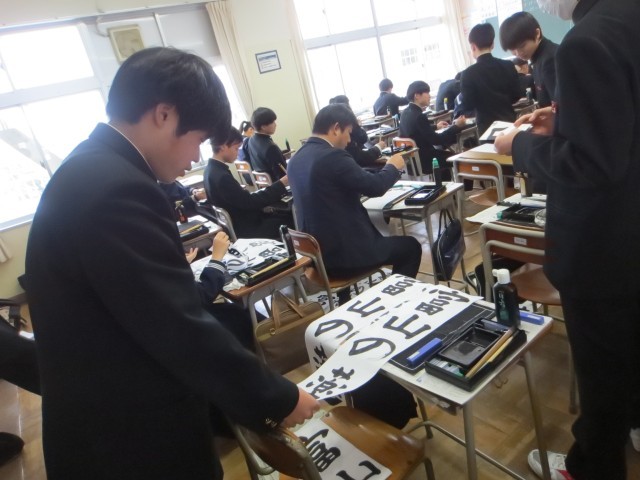書き上げた作品を真剣に選らび、廊下に掲示しています。