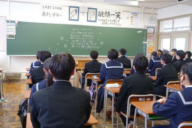 3年・始業式 / 書き初め大会 公開日 2025/01/08 更新日 2025/01/08 3学年 1月8日(水) 2,3限3学期が始まりました。中学校最後の学期であり、緊張感もありましたが、友人や担任との再会を喜んでいる様子でした。 (写真 1〜2枚目は始業式の様子) (写真 4〜6枚目は書き初め大会の様子) ※写真の位置でクリックすると、4枚目以降の写真を見ることができます。 +3