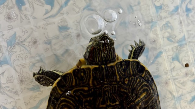 のぞみ級のミドリガメ「キリト」は、冬休み中は谷川先生んちに帰省していましたが、のぞみ級に戻ってきました。
