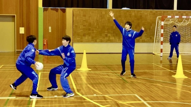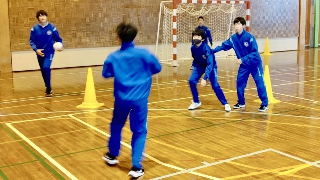 1月19日(日)の部活動・その1 公開日 2025/01/19 更新日 2025/01/19 部活動 1月19日(日) 10:00 男子ハンドボール部は、体育館で練習しています。じゃんけんでオフェンスとディフェンスを決め、状況を判断して2対1の攻防練習を行っています。