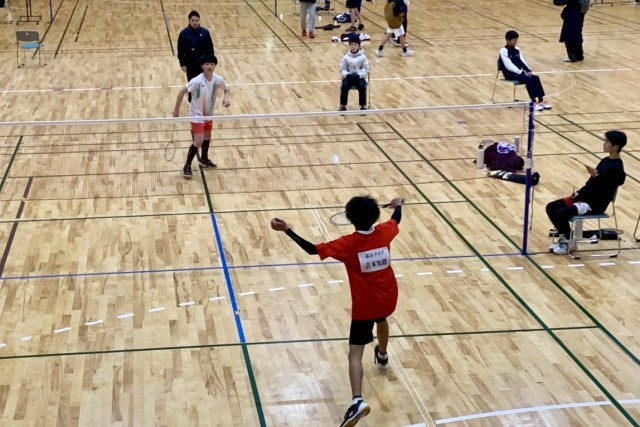 男子バドミントンの1年生の部の決勝は、どちらも互角でとてもいい試合で、お互い切磋琢磨し、高め合っていければと思います。