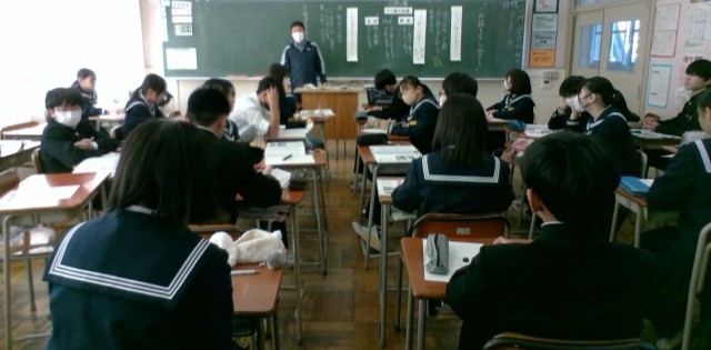 1年・授業風景 公開日 2025/01/21 更新日 2025/01/21 1学年 1月21日(火) 3限1年生は、ローテーション道徳を行っています。担任の先生以外の道徳の授業で、どのクラスもたくさんの意見が発表されていました。(写真 上:1年1組 道徳「いのちって何だろう」)(写真 中:1年2組 道徳「思いやりの日々」)(写真 下:1年3組 道徳「ごみ箱をもっと増やして」)