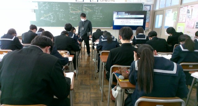 3年・授業風景 公開日 2025/01/21 更新日 2025/01/21 3学年 1月21日(火) 3限3年生は、繰り返し問題を解いたり、友達の考えを参考に自分の英文を考えたりと真剣に授業に臨んでいます。(写真 上:3年1組 数学「三平方の定理」)(写真 下:3年4組 英語「自分の考えをもとう」)