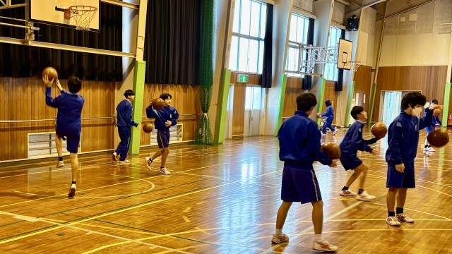 2年・体育・バスケットボール 公開日 2025/01/21 更新日 2025/01/21 2学年 1月21日(火) 3限2年4組の体育は、バスケットボールです。次回の授業で実技テスト(①レイアップシュート、②ゴール下からのシュート、③フリースロー)を行うので、各自、練習しています。