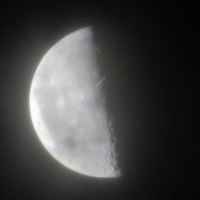 雲のすき間から…… 公開日 2025/01/22 更新日 2025/01/22 山室中学校のページ 1月22日(水) 6:20雲のすき間から、半月(下弦の月)が見えました。(もう少しスッキリ晴れると思っていたのですが、……) ▼南の空に見えた下弦の月