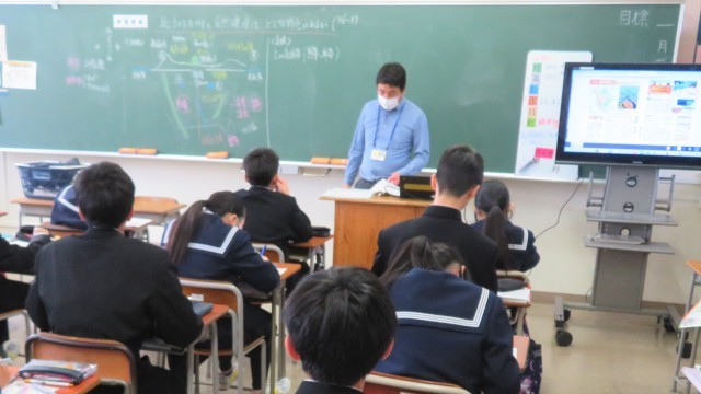 (写真 中:1年2組 社会「北アメリカ州の自然環境」)