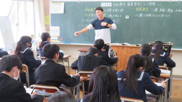 (写真 下:1年5組 保健「呼吸器官と循環器官」)