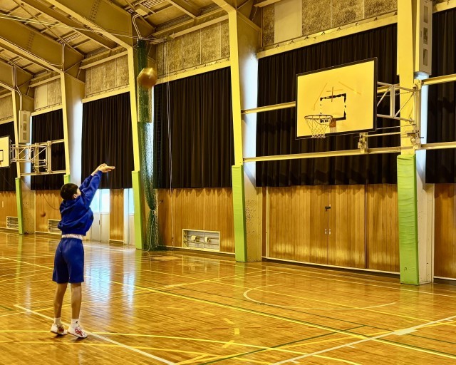 2年1組の体育は、バスケットボールの実技テストをしていました。